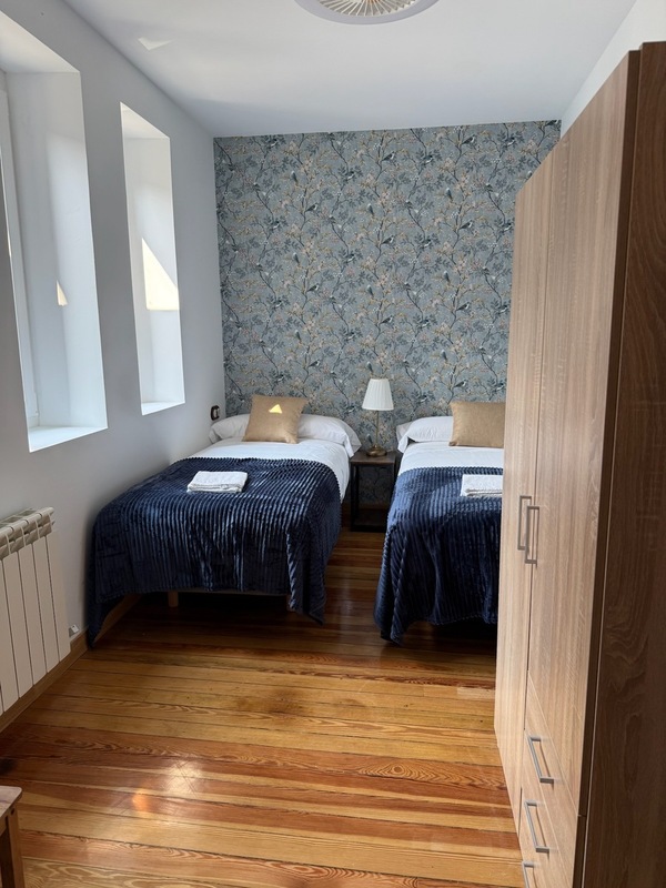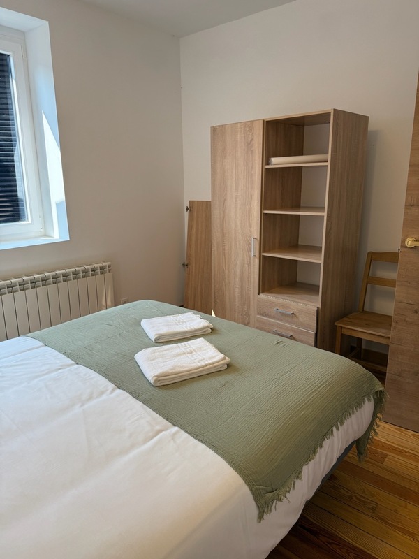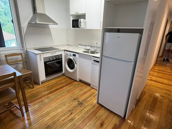Apartamento de dos habitaciones, una con cama grande de 1,50 X 2,00 y otra con dos camas, un baño, salón cocina totalmente equipada.